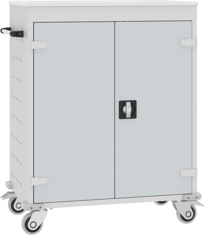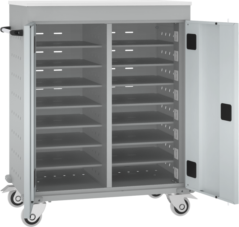 Unsere Ladewagen bieten Platz für eine Vielzahl von Geräten. Hier können die Laptops oder Tablets sicher aufbewahrt, bequem transportiert und geladen werden. Jedes Endgerät hat ein separates Fach mit einer Schuko-Steckdose zum Laden über das Netzteil. Die stabile Stahlkonstruktion sorgt für sichere Aufbewahrung und einfaches Umstellen des Wagens.