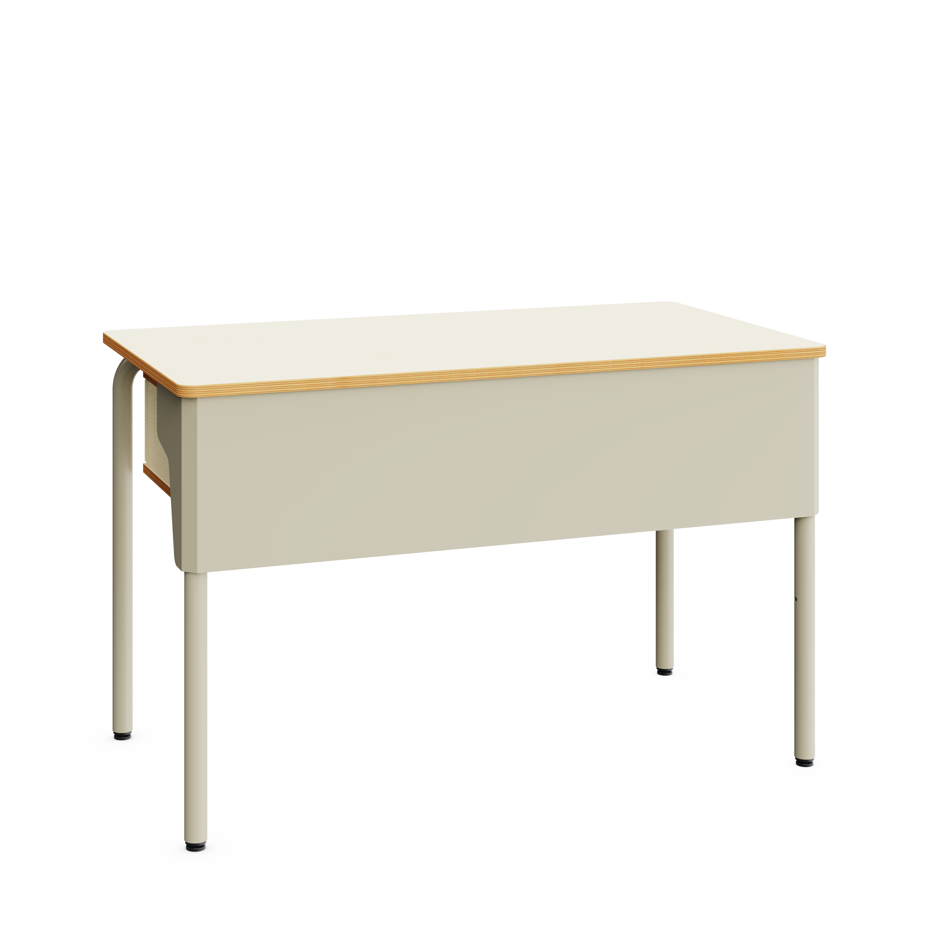 Rechteckiger Lehrertisch mit abschließbarem Schubfach und Sichtschutzblende. Auch als Erzieherinnentisch in Kindergärten geeignet.