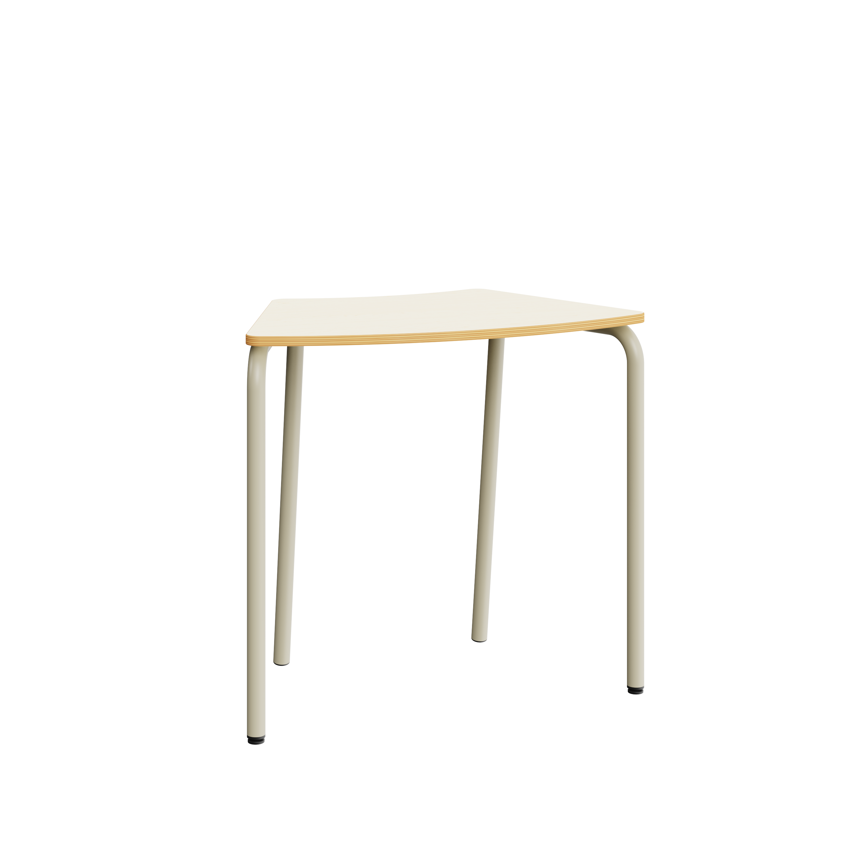 Einzeltisch mit 2 kleinen verdeckten Rollen und klappbarer Tischplatte. Der Tisch wurde konzipiert, um einfach zwischen Einzel- und Gruppenarbeit variieren zu können. Durch die klappbare Tischplatte, lässt sich der Tisch problemlos in einer Ecke verstauen und eignet sich damit auch für Räume mit geringem Platzangebot.