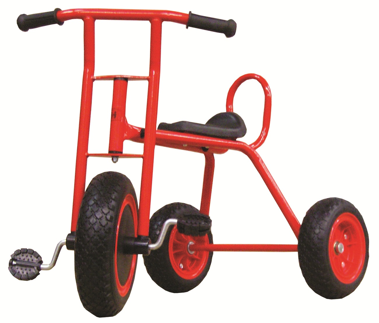 Pulverbeschichtetes Dreirad mit einer Sitzhöhe von ca. 42 cm.