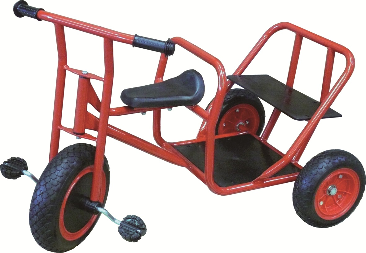 Ob vorne oder im Sozius das Vergnügen bleibt gleich. Pulverbeschichtetes Dreirad.